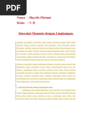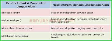 Interaksi manusia dengan lingkungannya yang sudah terjalin sejak ribuan tahun menghasilkan sejumlah bentuk strategi adaptasi. Lingkungan alam mencakup semua benda hidup dan. Salah satu bentuk interaksi interdependensi antarfenomena geosfer misalnya interaksi antara wilayah desa dengan wilayah kota. An yang positif antara masyarakat dengan. Bentuk interaksi masyarakat sekitar saya dengan lingkungan alamnya adalah sebagai berikut: