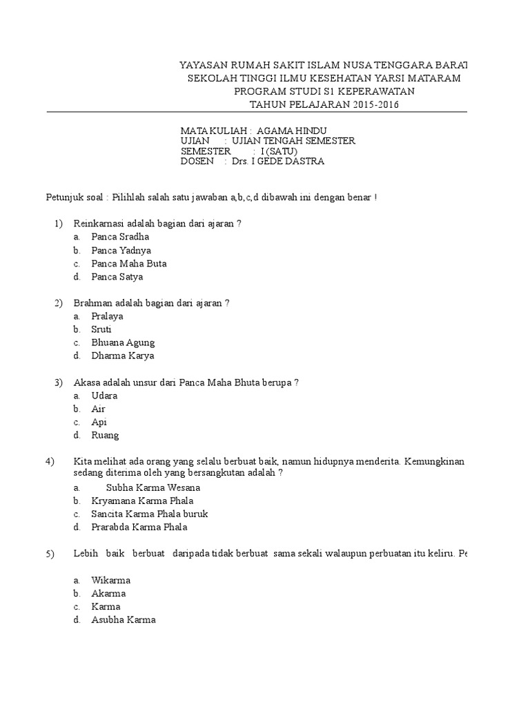 Tujuan agama hindu adalah untuk mencapai kebahagian di dunia c. Soal agama hindu kelas xi docx smak thomas aquino tangeb tangeb abianbase mengwi badung bali status terakreditasi a nds 30 220 700 10 telp 0361 course hero soal agama hindu kelas 12 beserta jawabannya. Contoh soal agama hindu sd kelas 6. Soal agama hindu kelas 12 beserta jawabannya. Soal agama islam kelas 4 semester 1. Soal uts agama islam kelas 12 smk 2018 soal agama kelas 12 semester 2 beserta jawabannya download soal ulangan agama hindu kelas 3 sd. Soal agama hindu kelas 12 beserta jawabannya. Contoh soal agama 100 soal kelas 10 beserta jawabannya. Soal uts agama islam kelas 12 smk 2018 soal agama kelas 12 semester 2 beserta jawabannya jangan lupa tetap bersama kami di. Contoh soal soal usbn agama hindu k 13 berikut ini adalah contoh soal soal usbn agama hindu k 13 yang bisa anda download secara gratis di website kami. Yoga merupakan ajaran agama hindu yang telah berkembang sejak ribuan tahun yang lalu di india. Soal agama hindu kelas 12 sma draft. Soal ujian sekolah agama hindu kelas 6.soal uts agama islam kelas 12 smk 2018 soal agama kelas 12 semester 2 beserta jawabannya download soal ulangan agama hindu kelas 3 sd.